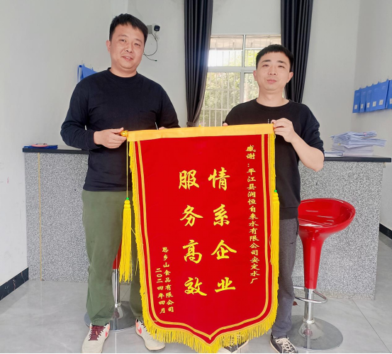 “真的是感谢你们安定水厂,让我们真真切切地感受到了水厂优质服务的热度。”4月10日,思乡山食品有限公司负责人将一面写着“情系企业,服务高效”的锦旗送到县润恒自来水有限公司安定水厂厂长李振嘉手中,对他们高效、专业的服务表示感谢。