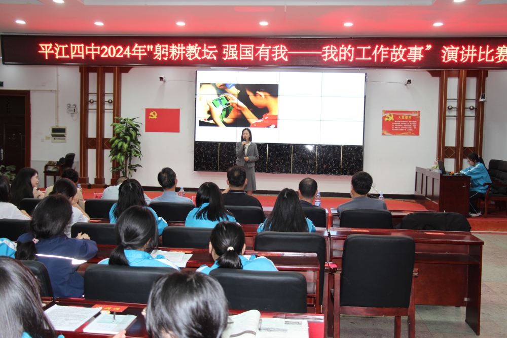 师者匠心,止于至善。为深入推进教育系统师德师风建设,切实强化教师的理想信念,展示新时代农村高中教师的奉献精神和奋斗姿态,推介典型,营造氛围,5月6日晚,平江四中举行“躬耕教坛 强国有我——我的工作故事”主题演讲比赛。部分校务委员与各年级语文备课组长担任评委,高一年级部分学生现场聆听。