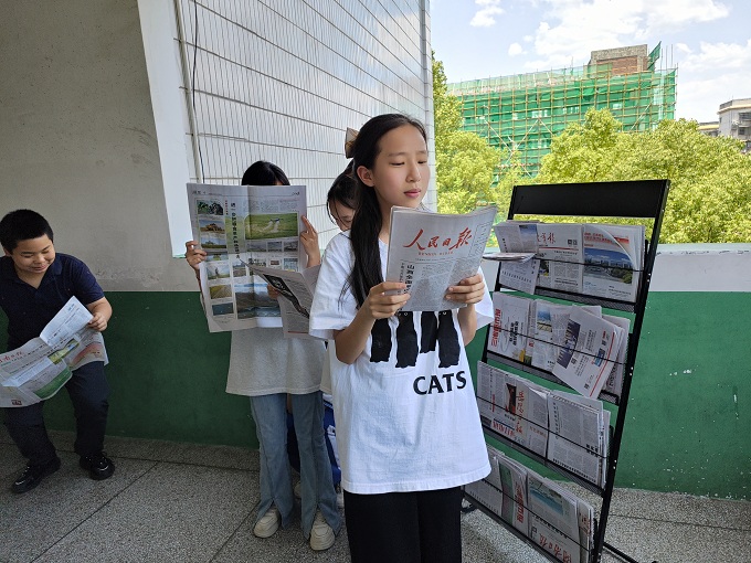 “紫金山是如何变绿的?”“巴黎奥运会官方海报里‘藏着’8个吉祥物是什么?”近日,新城学校通过在校园关键位置设立报架,将实时的新闻报道融入学生的思想政治教育中。