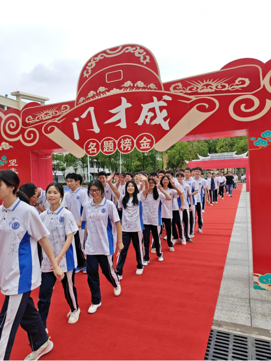 学子们郑重地在高考车票上签上姓名,昂扬地跑过成才门,欢欣地奔向未来。(胡双燕 周雯 陈心如)