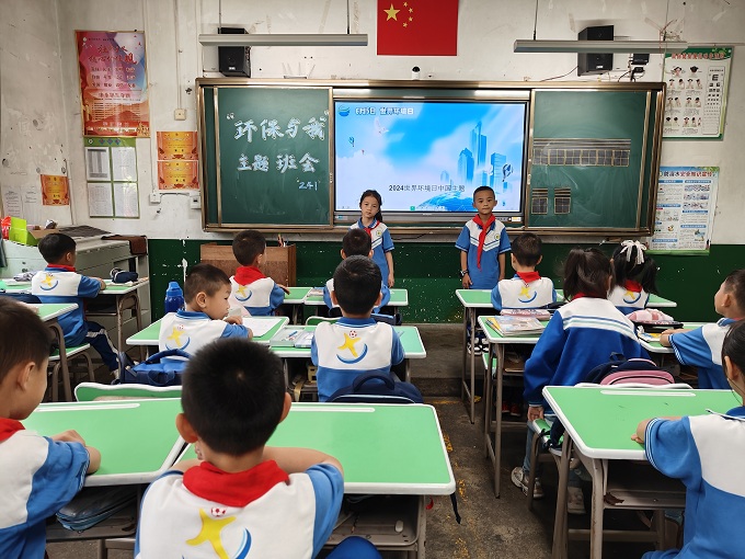在主题班会课上,各班围绕世界环境日主题,组织开展了各具特色的班会活动,采用多种方式引导学生从爱绿护绿、垃圾分装、废物回收与再利用、养成勤俭节约和不随地乱扔的好习惯等做起,在不践踏草坪、不攀折花木,节约每一滴水、一度电、一张纸、一粒粮食,捡拾身边的垃圾等环保行动中,树立环保意识。同时各年级对这次活动中的先进班级进行了表彰。