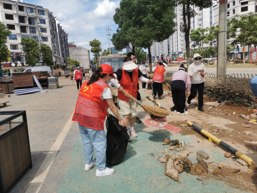 7月3日,政务服务大厅全体工作人员到岗到位。工作人员一部分化为志愿者,在局长余防根的带领下,深入简青社区大力开展清淤清扫工作。一部分留守大厅,做好厅内整理,为复工复产做准备。
