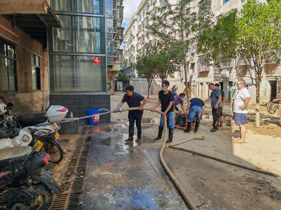 由于局办公区地势较低,被水淹时间久,清淤泥难度大,这场清淤战争从7月2日开始打响,已有整整三天三夜。在局党组的坚强领导下,全局干部职工白天分成两批,一批深入各乡镇(街道)指导救灾核灾、补种减损,另一批在局机关院子、责任路段全力以赴清淤清洁。到了晚上,两批人员再集聚一处,全力以赴开展清淤清洁,大部分同志连续奋战,默默无闻地坚持了三天三夜。