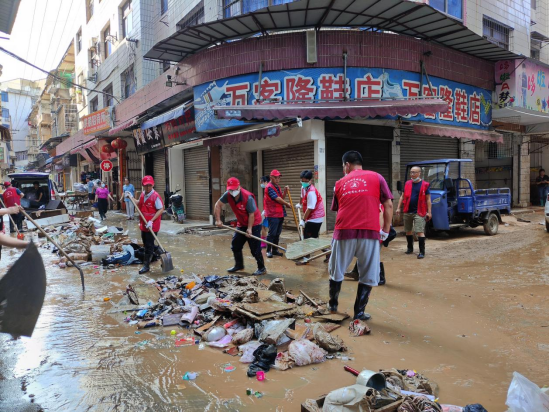 此次汛情,县城中心城区受灾严重,清淤、排涝、消杀等灾后修复工作任务艰巨,在得知县社机关以及社属公司人手严重短缺、人员调配十分紧张后,7月4日起,供益美公司从瓮江调配垃圾清运车6辆、工作人员18名驰援县城。金龙、梅仙、栗山、谈岑、南江、虹桥等15个乡镇供销社主动请缨,在配合辖区所在地乡镇党委政府做好当地及自身的防汛救灾工作的同时,分批次驰援县城的灾后清淤、排涝工作,自带工具从早上一直工作至晚上十一点,充分彰显了供销人的责任与担当。