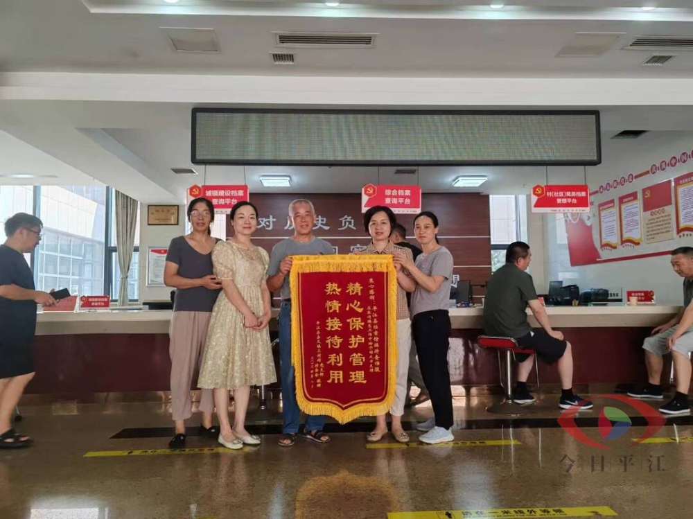 为感谢县档案馆在档案查询利用中提供的优质服务、在6.30水灾灾后重建中的全力救助,加义镇三村村、汉昌街道百花台社区均由支部书记作代表,到县档案馆登门赠送感谢锦旗,并对县档案馆干部职工细心周到的服务品质和勤勉务实的实干作风大加赞赏。