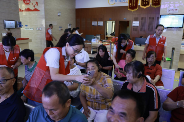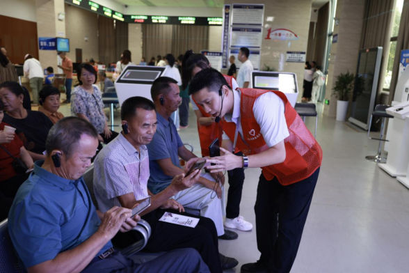 志愿者手把手教老年群众通过“湘易办”进行养老认证