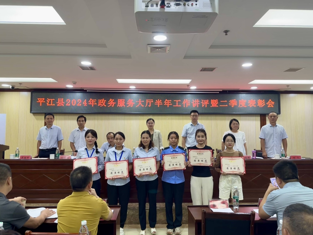 会议宣读《关于表彰政务服务大厅2024年度二季度“清廉窗口”“清廉审批股长”“清廉模范”的通报》,对二季度优胜单位和个人进行了颁奖,并对政务服务半年工作进行了全面讲评。发改窗口分管副局长罗琼、税务窗口负责人王泳琴、人社窗口工作人员童胡容作交流发言。
