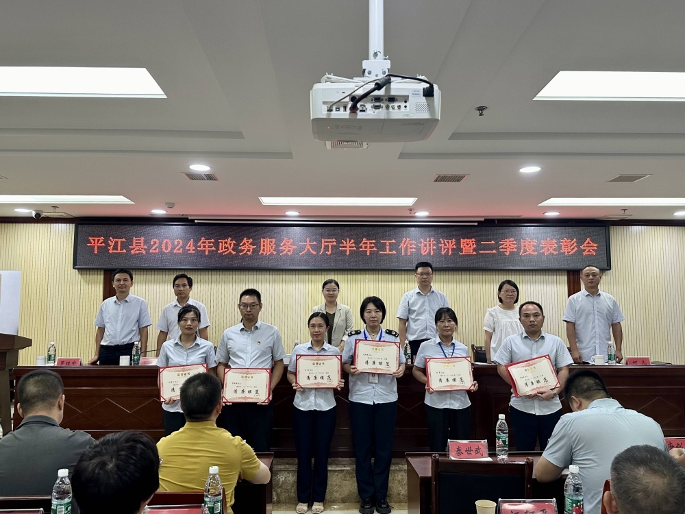 会议指出,今年来,县数据局及政务服务中心各进厅窗口单位认真贯彻落实中共二十届三中全会精神,紧紧围绕中央和省、市、县关于“促进政务服务标准化、规范化、便利化”的工作要求,全面把握县委、县政府总体工作部署和目标任务,以便民为出发点,以优化营商环境为牵引,以“高效办成一件事”改革为总抓手,周密部署,强劲发力,各项工作有序推进、提质增效。半年来,我县40余家部门(单位)在省“互联网+政务服务”一体化平台共汇集各类政务服务事项办件量104574件,各类政务服务事项正常办结率99.79%,办件法定提速率98.4%、办件承诺压缩率73.54%,全县85%政务服务事项实现全程网办,推进电子证照汇集共享,完成各类电子证照汇集种类达95类(要求80类),“无证明城市”、“自动表单生成”、“免申即办”、“乐游平江”、“跨省通办”等通过数据赋能实现特色场景应用。