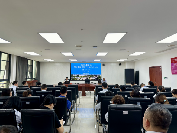 为深入学习宣传贯彻党的二十届三中全会精神,扎实推进全会精神在政务改革中落地见效,9月26日上午,县数据局召开学习贯彻党的二十届三中全会宣讲会。会议由县委党校培训讲师姚敏宣讲,县数据局全体班子成员、窗口审批股长(负责人)、机关及大厅党员干部80余人参加会议。