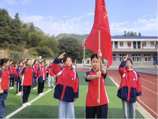 鲜艳的红领巾系满理想,载着我们扬帆远航。火红的队旗迎风招展,指引我们前进的方向。伴随着庄严的《出旗曲》,旗手们昂首阔步走入仪式现场,队员们肃立向中国少年先锋队队旗敬礼。
