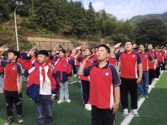 “我们是共产主义接班人,继承革命先辈的光荣传统,爱祖国,爱人民,鲜艳的红领巾飘扬在胸前……”嘹亮的队歌唱出了新时代少先队员们勇往直前的信心和决心,唱出了对祖国的责任与担当。
