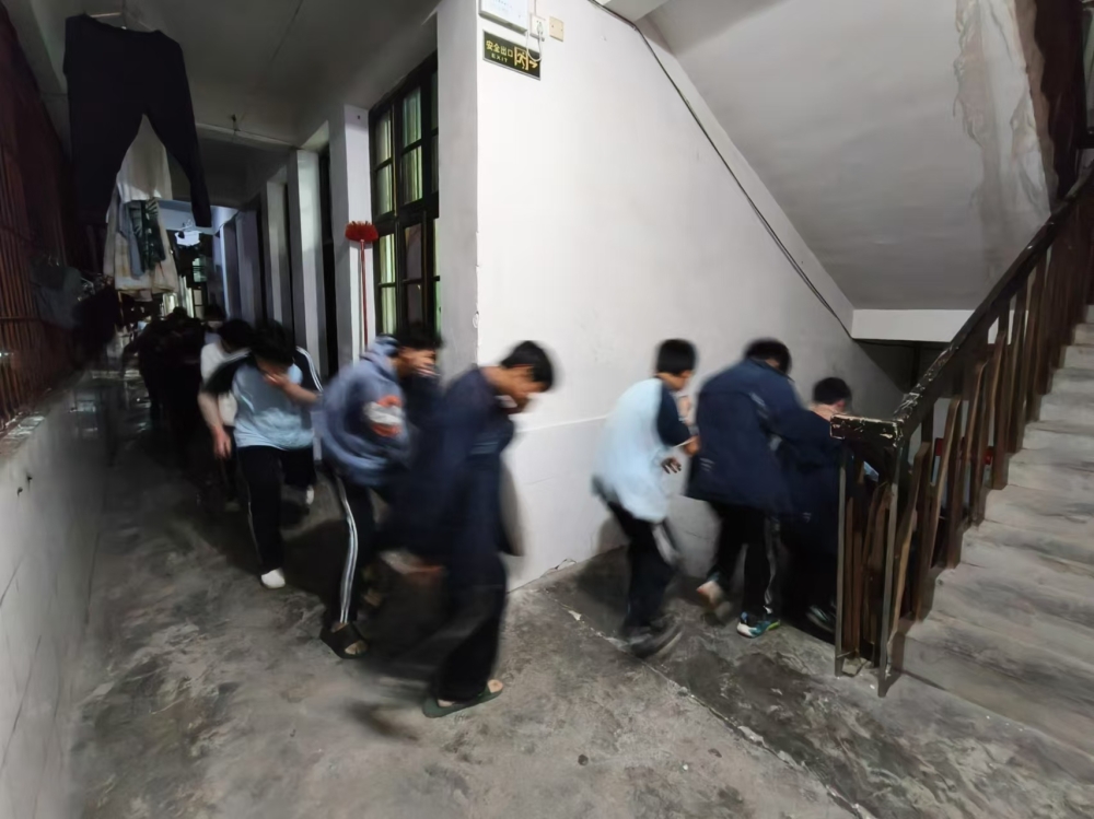 为了进一步提升寄宿生的消防安全意识和应急自救能力,10月29日晚,长寿镇维夏中学在宿舍区域开展了消防演练活动。