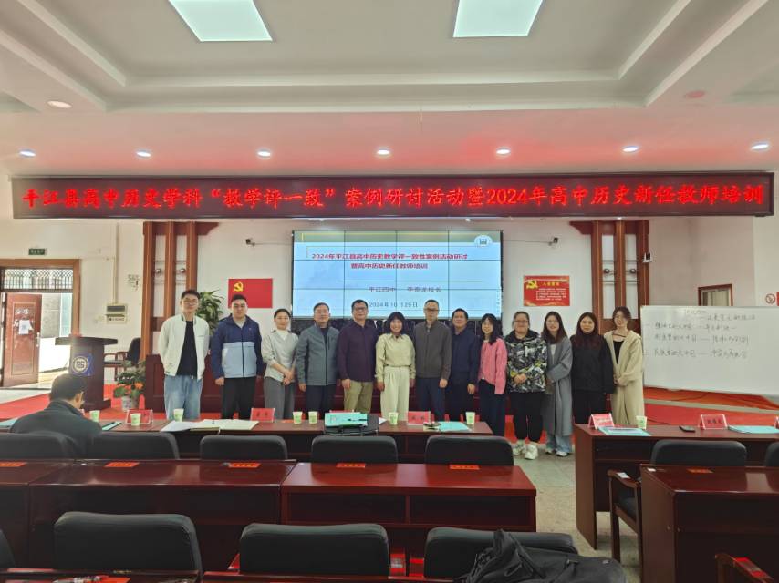 相约深秋,寻意探蕴。为深入落实新课标要求,树立“教学评”一致性教育理念,落实学科核心素养的培养目标,提升教师专业素养,10月29日,县高中历史名师工作室在平江四中开展了“教—学—评”一致性视域下的课堂教学示范课例研讨活动暨2024年高中历史新任教师培训活动。