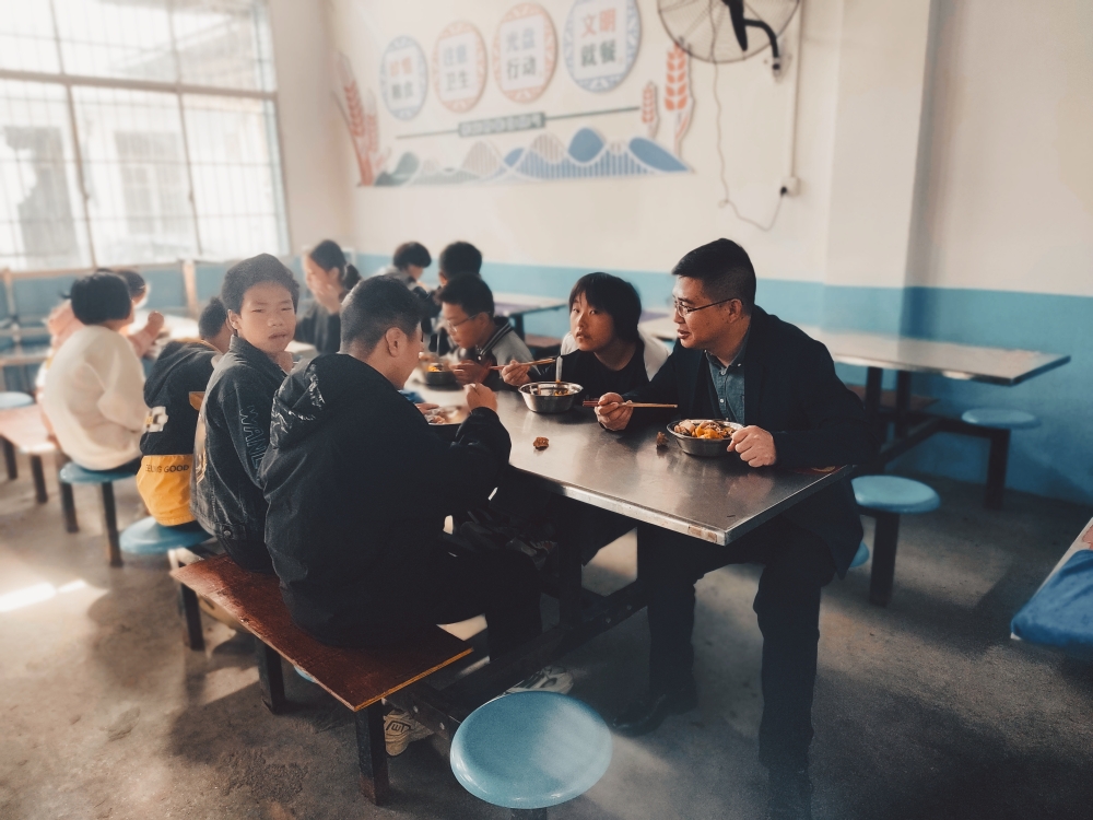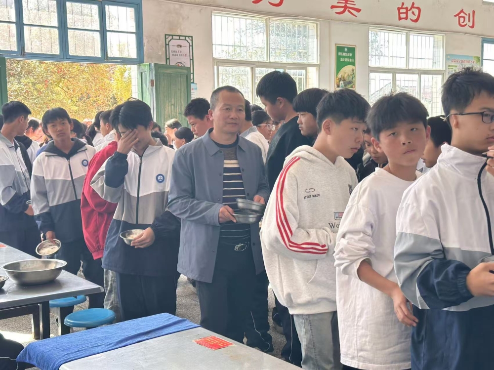 同一时间,第六学区书记、主任喻理国等人来到平江九中,跟师生们一起排队打饭菜,愉快地就餐。随后,喻理国缴纳了中餐费7元。