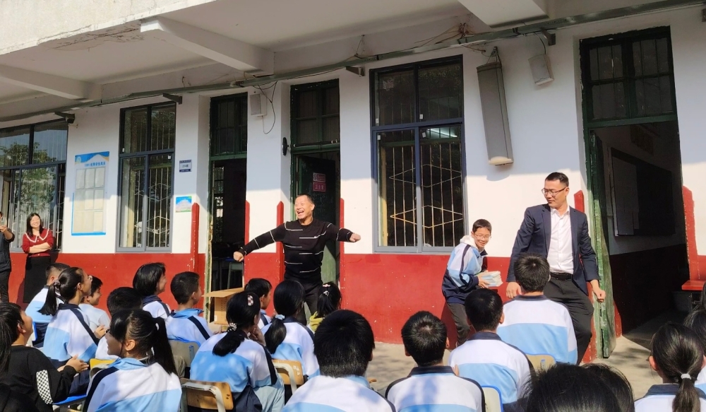 “如果童年、童年是一首歌,谁来拨动它的琴弦。”随着七年级音乐教材里的一首郑冷横作曲的《四季花语》响起,现场的空气瞬间被点燃。接着,郑冷横邀请校长唐益龙一起挥动着双手欢快起舞,台下的同学们热情高涨地拍打着节奏,每个人的脸上都洋溢着灿烂的笑容。那灵动的音符,仿佛化作春日的繁花、夏日的盛荷、秋日的金菊、冬日的寒梅,在同学们身边摇曳生姿。