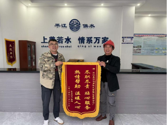 近日,一面绣有“尽职尽责、贴心服务、热心帮助、温暖人心”字样的锦旗,送至县润恒自来水有限公司梅仙水厂厂长毛增强手中。“非常感谢你们梅仙水厂工作人员,为民解忧,帮我们解决了漏水问题!”梅仙镇梦雅房地产有限公司燕燕物业负责人感激地说。