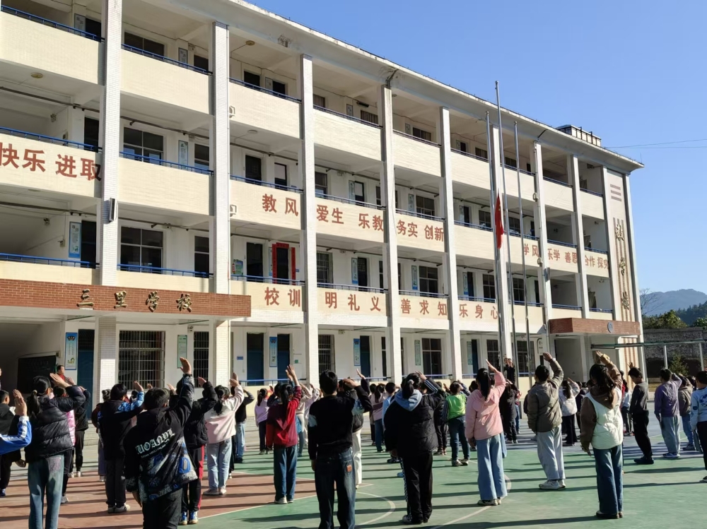少年不畏寒风起,驰骋赛场正当时。11月29日,三里小学举行了2024年冬季运动会,一年一度的运动会,是三里小学实施的一项重大素质教育活动,是对全体师生精神面貌、身体素质,以及运动精神的一次检阅。课间,阳光洒满校园,五星红旗伴随着金色阳光冉冉升起,运动会在庄严的升旗仪式中拉开序幕。政教主任易检来给学生们详细讲解了运动会的流程和规则,随后作为裁判代表的彭彤和六年级学生运动员代表邱榆豪先后宣誓,最后校长致辞,勉励全体运动员发扬拼搏进取、健康向上的精神。