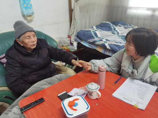 调研过程中,社工们不仅认真细致地开展问卷调查,还主动和老人们聊家常、讲政策,快速让老人敞开心扉、畅所欲言,确保更真实、更全面了解他们的日常生活、健康状况以及对养老服务的期待。对于一些视力不好或文化程度不高的老人,社工们更是耐心地一字一句将调查内容读给他们听,再用通俗易懂的话语讲解问卷调查的实际意思,又按照老人们的个人理解和意愿帮他们勾取选项。“谢谢你们来听我们这些老人家唠叨,给你们的用心、耐心、细心点赞!”平时爱刷刷短视频的江娭毑一边竖起大拇指,一边用网络流行词夸赞着前来调研的社工。