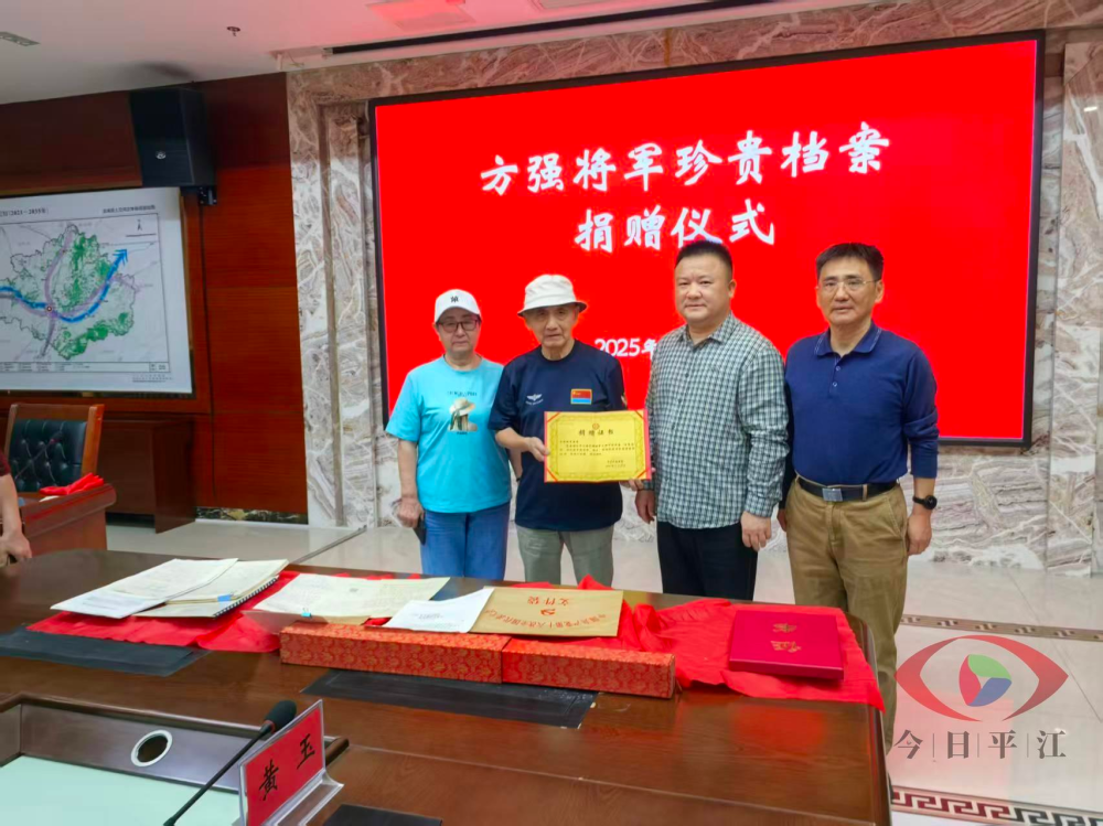 10月13日上午,平江县档案馆隆重举行方强将军珍贵档案捐赠仪式。将军后人亲临现场,将一批承载着厚重历史与革命精神的珍贵档案无偿捐赠给家乡。