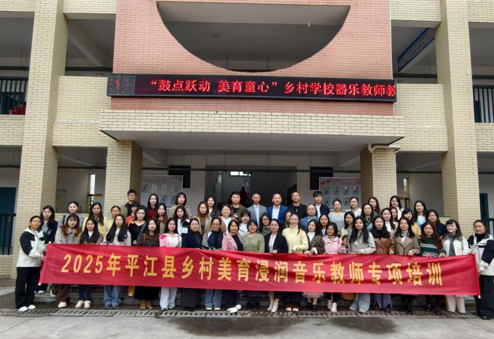 2025年10月31日,由贵州省为爱黔行公益服务中心与县教育局联合主办的“平江县2025年美育浸润计划·大山里的音乐课堂”乡村音乐教师专项培训在龙门镇中心小学举行。来自贵州省为爱黔行公益服务中心项目的主任赵桃莉、专员李玉林 刘学珉三名负责人和平江县各中小学的60余名音乐教师齐聚一堂,共同开启了一场以节奏与激情为主题的美育研修之旅。