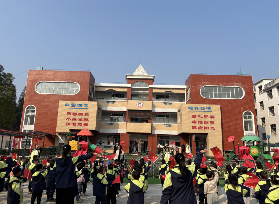 在平江这片“将军故里”上,余坪镇中心幼儿园将红色教育从墙面标语转化为生动实践,深度融入幼儿可感、可知、可参与的成长日常。12月9日,一场“军味”与“童趣”交融的特色展示活动在此展开。县教育局及第六学区相关负责人、学区各幼儿园园长一行走进校园,沉浸式体验红色教育与幼儿发展深度融合的生动场景。