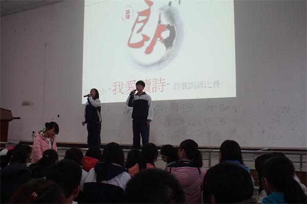 比赛朗诵诵读了《梦游天姥吟留别》、《将进酒》、《乌骓别霸王 》、《再别康桥》、《相信未来》等二十多首古诗和现代诗,让诗歌再次彰显无穷魅力,极大地感染了在场的全体师生。