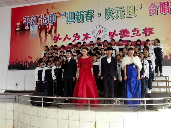 12月31日上午,平江七中校园里暖意洋洋。为加强对学生的爱校教育,增强班集体凝聚力,平江七中举行了“迎新春?庆元旦”合唱比赛活动,高一年级12个班、700余名学生用满腹的激情、嘹亮的歌声,展示了他们的独特风采。