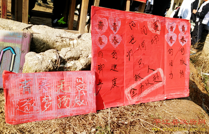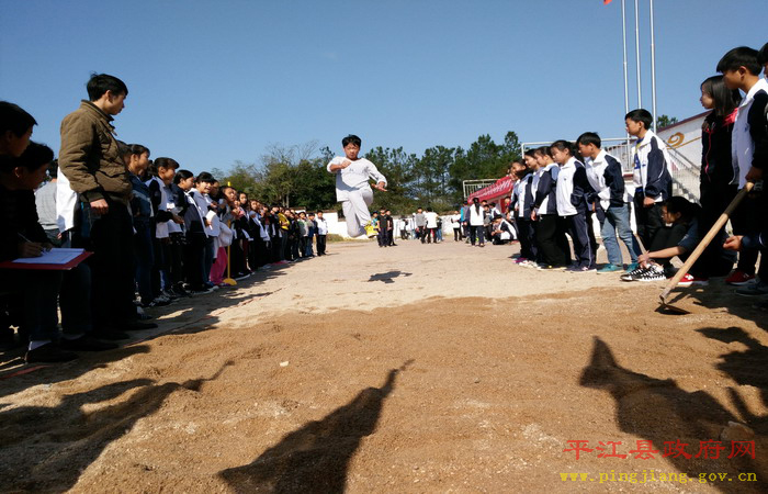 挖一个简易沙坑,置一块木制跳板,就组成了跳远场地;操起一个纤维袋,两脚往里一套,就开始袋鼠跳;撒上几把石灰,就构成了一条条欢乐的跑道……龙门中学是一所乡村寄宿制学校,运动会没有规模宏大的开幕式,没有专业的塑胶跑道,没有齐备的体育器材。但丰富的比赛项目,激烈的比赛场面,还是让孩子们热情高涨,乐在其中。“初中的运动会比我们小学的好玩多了,真有味!”一名七年级的学生这样说道。