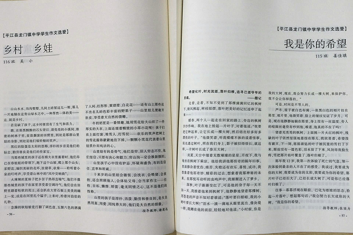 据了解,《洞庭红叶》杂志由岳阳市老年文学协会创办,曾先后发表过山区湖乡农村中学生的许多作品。此次选登的龙门中学学生的作品以“家乡情”为主题,均由该校学生原创。负责作品选送的张顶力老师认为,这八篇作品文字隽秀,情感真挚,这次活动对于孩子们来说很有意义。他还说:“很多学生都表示以后会积极参加征文投稿活动,生活中细观察,多用心,勤动笔,创作出更优秀的文学作品。”