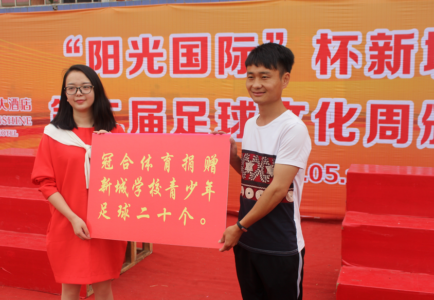 此次活动中正式宣布“阳光新城足球队”成立,阳光集团董事长叶琳、新城学校校长熊准先共同进行揭牌。县教育体育局党委副书记、副局长尹定章,县人民政府副县长潘如意,阳光集团董事长叶琳先后致辞。
