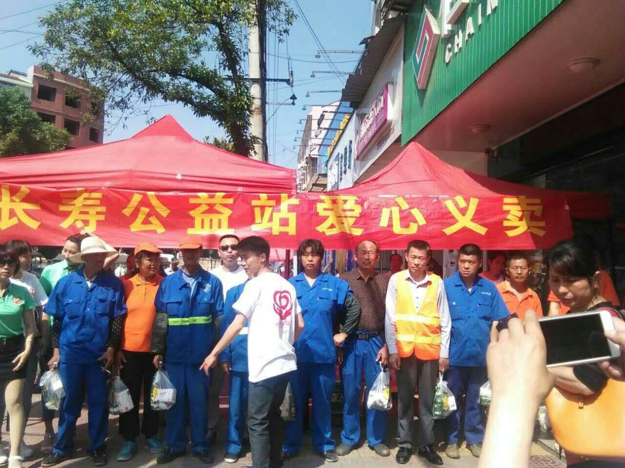 为给每位战斗在一线的环保卫士们送上节日的礼物,长寿公益站的公益天使们纷纷拿出自己的心爱之物,在长寿“仁丰堂”药店前举行爱心义卖活动。义卖结束后,天使们用善款购买了大量矿泉水、啤酒、解暑良药、咸鸭蛋等物品,将其送给长寿镇的全体环卫工人和社区义工。共送出矿泉水和啤酒160余瓶(每人每样一瓶)、解暑药80余盒(每人一盒)、咸鸭蛋300余个(每人4个)。