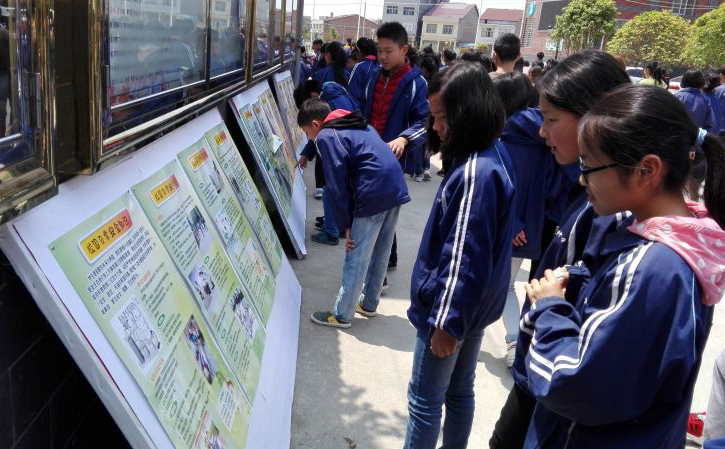 南江中学的安全知识宣传展板旁边,围满了求知若渴的学生,不时地就安全问题发表着自己的看法。