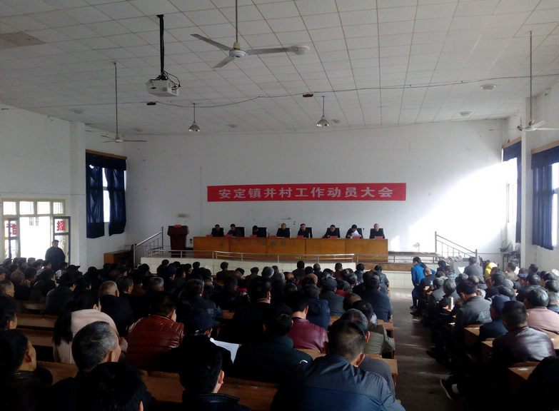 3月31日,安定镇召开并村工作动员大会。会议明确,通过村级区划调整减少11个村,合并成为33个建制村的工作任务,并成立了并村工作领导小组,制订了时间进度表。同时要求,各村和相关部门单位要严格遵守各项财经纪律和廉政建设的规定,坚决做好“十个不准”和“六个严禁”,切实做到令行禁止。