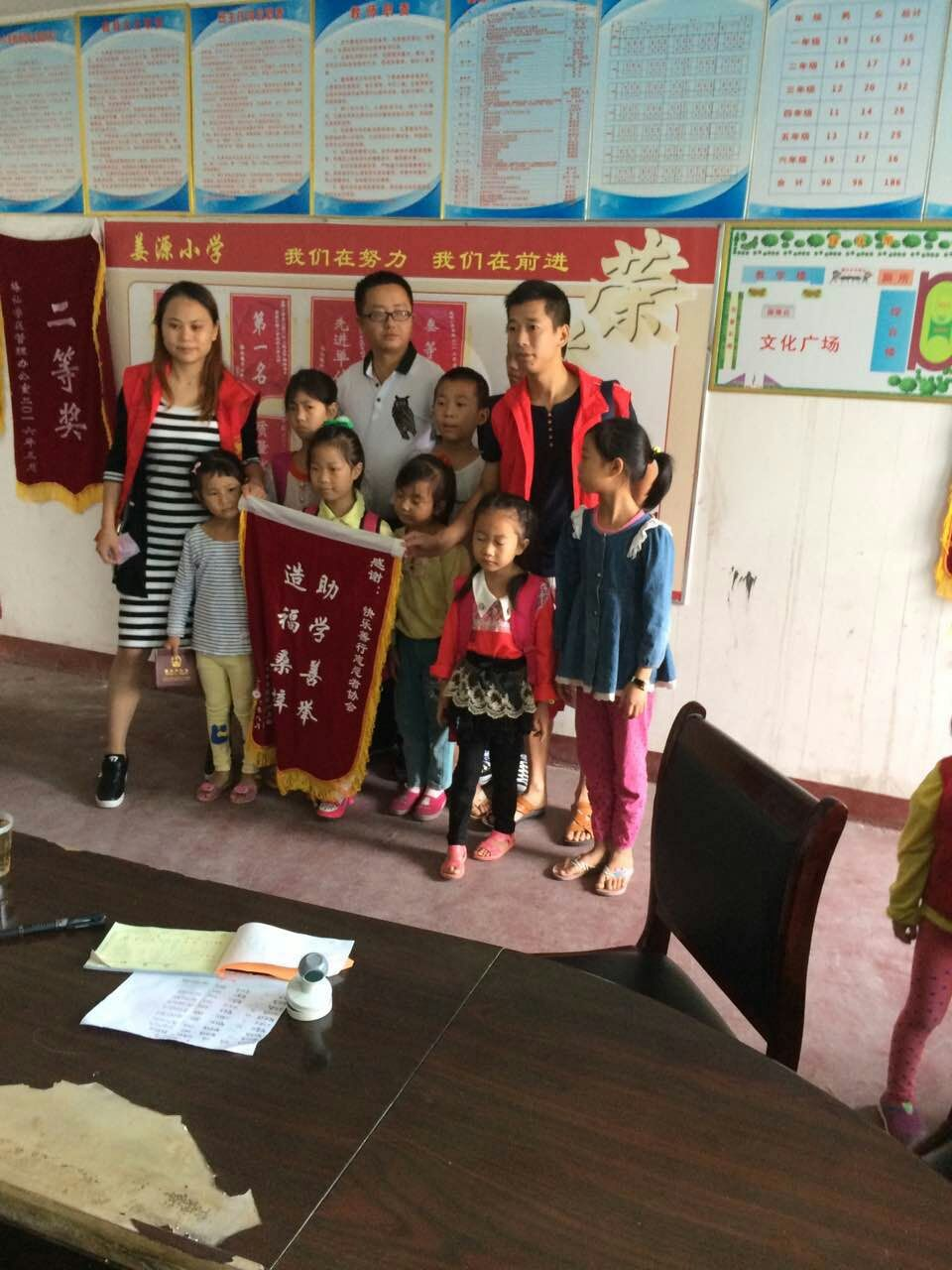 除了快乐的小学生,姜源小学今天也迎来了几位特别可爱的人——快乐善行志愿者们,志愿者们此行目的是代表协会爱心人士来姜源小学慰问、关爱贫困学生,希望把爱心传播到姜源。李队长带队的志愿者们来到校长办公室,向校长道出此行目的后,校长介绍了几位贫困学生的基本情况,随后,志愿者们向九位贫困学生送上了爱心助学款,合计善款四千八百多元,并对他们寄予期望,希望他们好好学习,长大后做一个有爱心、有责任感的人。为了答谢可爱的志愿者们,姜源村支两委和学校向快乐善行志愿者协会送上了“助学善举、造福桑梓”锦旗,感谢以志愿者为代表的社会爱心人士对贫困学子的关爱和帮助。