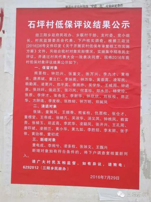 四是结果公示到位。将民主评议结果第一时间张贴到村部宣传栏和各组,将“保留对象”、“清理对象”、“新增对象”、“兜底对象”悉数公开并公布举报电话,全面接受群众监督,对群众有异议的对象及时进行复核、查证,做到群众意见有反馈、疑问有解释,确保评定结果让人信服。