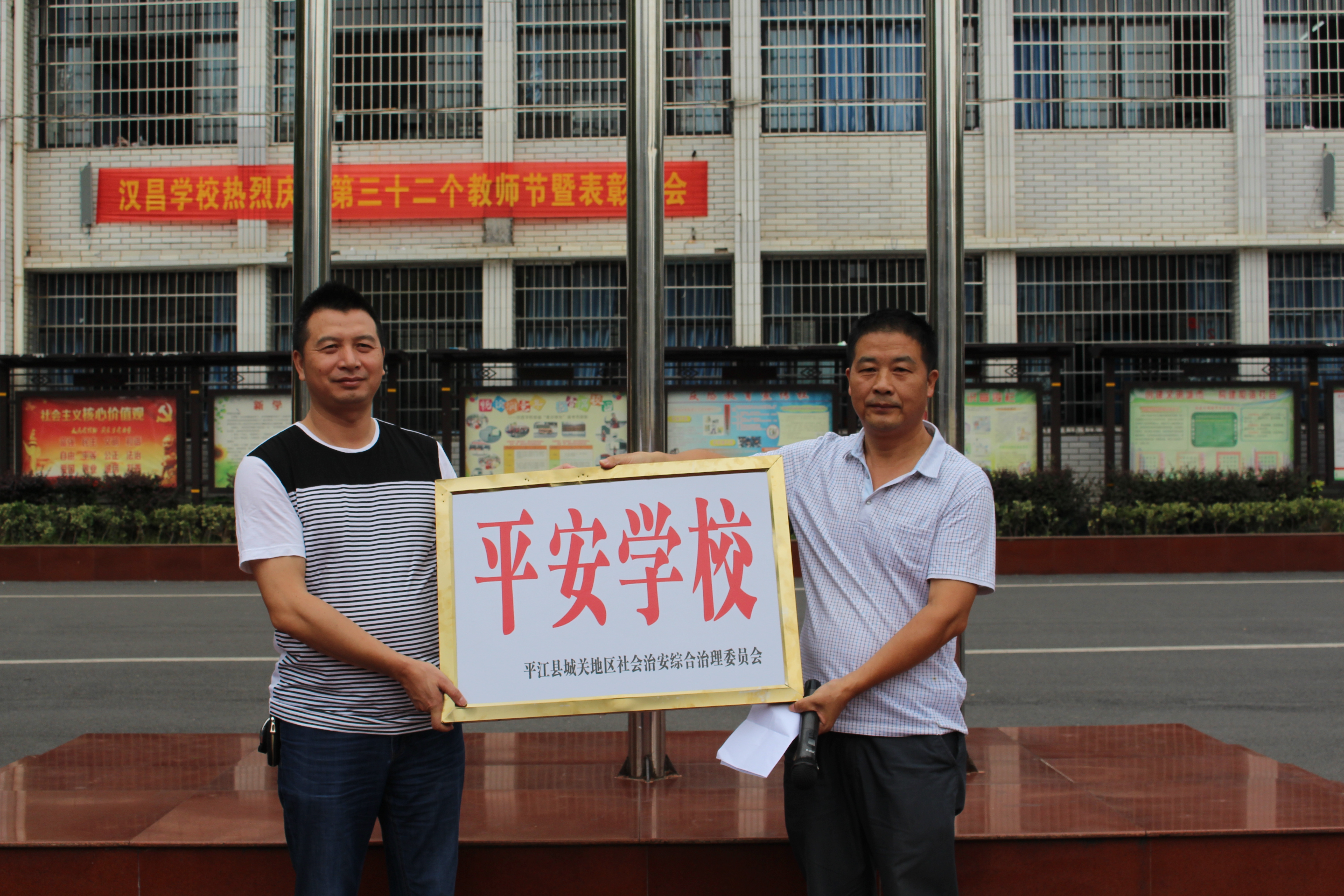 9月20日上午,汉昌学校全体师生汇集在操场,共同见证汉昌学校喜获“平安学校”的称号。城关镇政府两位领导参加了授牌仪式。