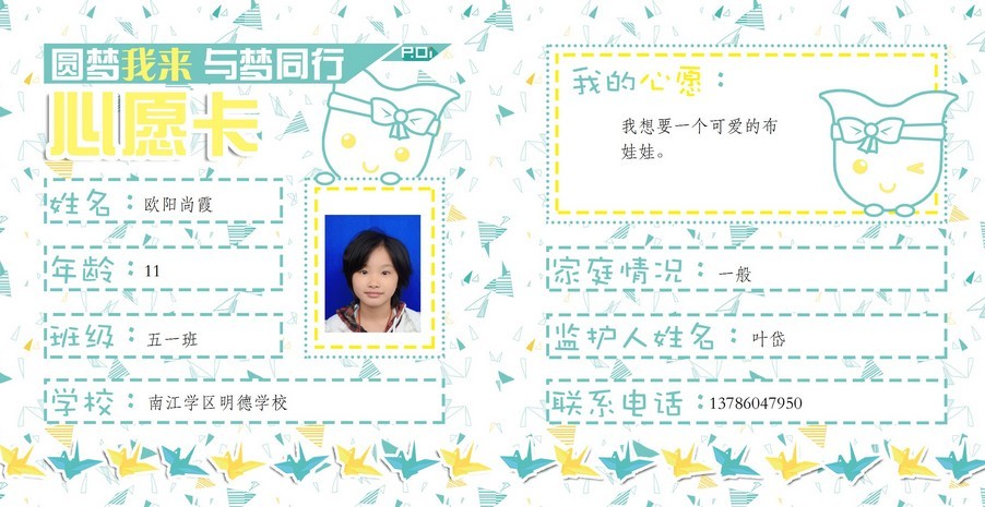 “微心愿”卡片