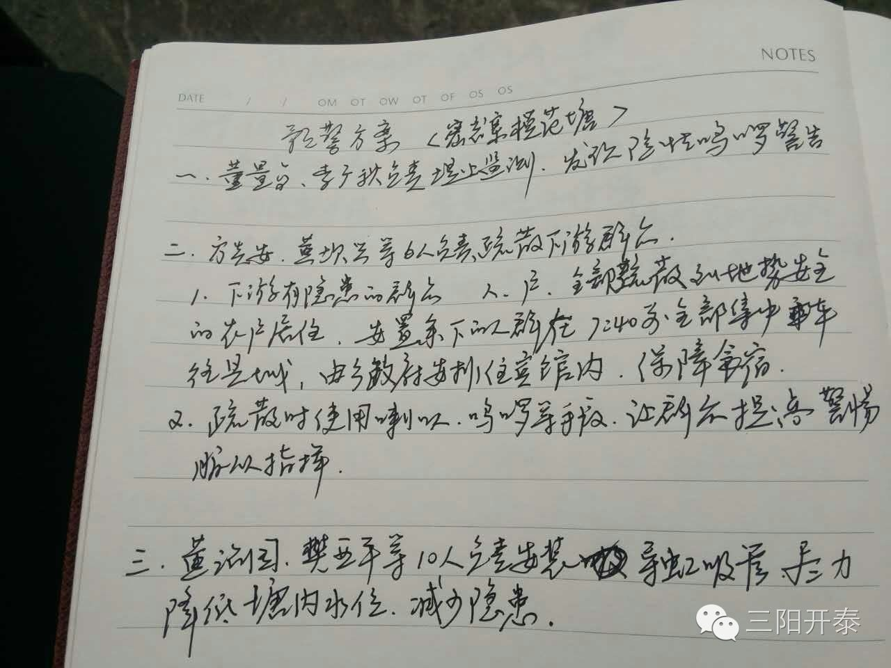 4点30分,三阳乡党委书记潘典宏,乡长姚志宏赶到现场,马不停蹄组织联村干部,村组干部召开会议研究抢险方案,明确要求将群众生命安全摆在第一位。与此同时,要求乡应急大队立即穿戴好防汛装备,整队赶往现场支援抢险;嘱咐党政办立即租好中巴车、订好宾馆,供待转移群众乘坐和过渡。