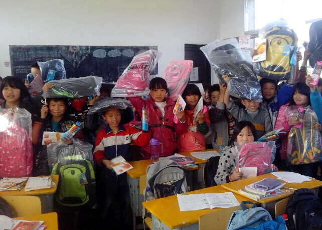 拿到“爱心书包”的同学们格外开心!