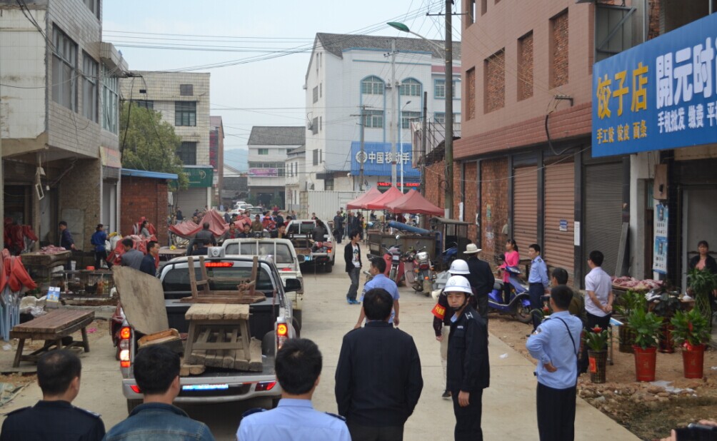 为了全面做好文明创建工作,迎接省级第三轮城乡统筹示范镇验收,同时确保伍市镇顺利申报全国重点镇,伍市镇党委政府坚决打响依法全面清理整顿镇区占道经营行为战役。10月16日上午,伍市镇机关干部联合县城管局、镇派出所、工商、运管、五中队、城管、巡逻队、医院、林业站、居委会等单位干部警察100余人,对集镇范围的占道经营和乱搭乱建行为进行了全面清理整顿,疏导和劝离老菜市场流动摊贩,取缔马路市场,引导原老菜市场经营业主、马路市场整体搬迁到新建的镇中心农贸市场摆摊交易。此次行动首战告捷,取得了良好效果。