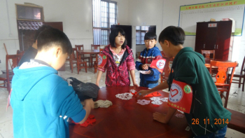 此次活动中,志愿者们别出心裁,除了送上点心、打扫卫生之外,还准备了许多自制的小卡片和各种剪纸,把老人们的住所装扮得更加温馨浪漫。小志愿者们陪老人们围坐一起,拉拉家常聊聊天,看着眼前这些年轻稚嫩的少年,老人们绽开了幸福的笑容。