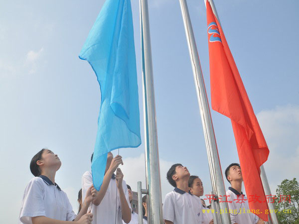 学生代表宣誓礼环节,学校3000多名中小学生齐声高呼“百年启明,光彩熠熠;辉煌启明,我有责任。……要求自己:诚信,自律,阳光,向上;努力做到:好学,明理,尚美,求真。我将持之以恒,不断超越自身;成才进步,做最优秀的自己。”