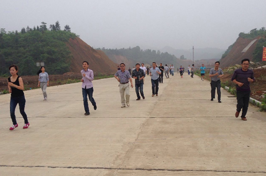 镇长张波作赛前动员,全体参赛人员高喊口号“我健康,我快乐”,一声哨响之后,比赛正式开始。此次登山比赛采用团体赛方式,浯口镇机关干部职工全员参与,按照所办村及所在线分为政府机关队、浯口管区队、西江管区队、三联管区队、计生办、农技站队和林业站、派出所队六支队伍,每队由十余名队员组成,以每个团队最后一名到达时间为准,取团队前三名进行奖励。
