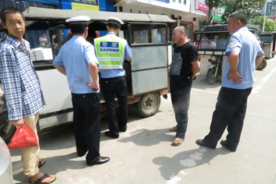 民警在对叭叭车非法营运进行查处