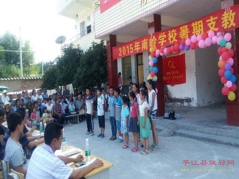 南岭学校是湖南工业大学爱在工大?义工联合会定点支教基地,由石牛寨镇大学生村官谢寒波发起建立,本次已是第二年支教活动,支教免费,自愿报名,共招生91名,分大班、小班进行教学。支教根据学生特点和家长建议,开设了英语、绘画、舞蹈、武术等8个课程,其中英语、武术、手语是南岭学校学生第一次接触,巩固了学生们的基础课程,同时注重兴趣培养、能力拓展和心理辅导。石牛寨镇党委、政府给予了本次活动大力支持。