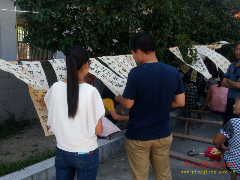 文艺汇演分三个环节:文艺表演、书画展和颁奖典礼。南岭学校的小学生表演了朗诵、相声、手语舞等节目,书画展展示了“我们的学校”、“未来世界”等绘画作品和诗词书法作品。节目和作品是南岭村孩子们在18天支教中的学习成果,赢得了村民的阵阵掌声和连连称赞。镇政府向支教团队颁发了“支教助学,情系山村”的锦旗。