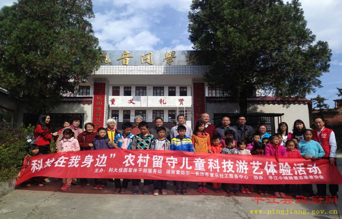 11月3日上午,阳光格外灿烂,来自省城长沙国防科大佳园军队干休服务站的老教授、老专家及爱心志愿者一行人抵达了板江乡观音阁小学,开展关爱山村留守儿童“科技在我身边”游艺体验活动。此次活动由湖南爱弥尔爱乐社工服务中心、平江县小城微爱组织联手精心策划组织。