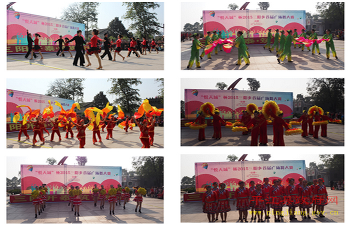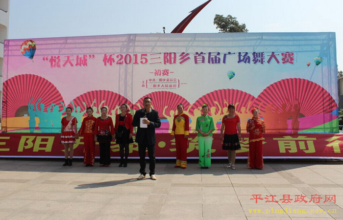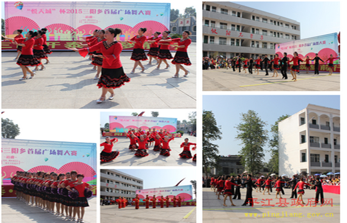 凝心聚力共筑中国梦,同心同德齐奏和谐曲。10月25日上午8时,由三阳乡政府举办的首届广场舞大赛初赛在三阳中学拉开序幕,该乡党委书记潘典宏在开幕仪式上发表致辞并宣布比赛正式开始。来自全乡各村各单位的27支代表队伍500余人参加比赛,为现场1000余观众带来或动感奔放或柔美典雅的广场舞曲目。