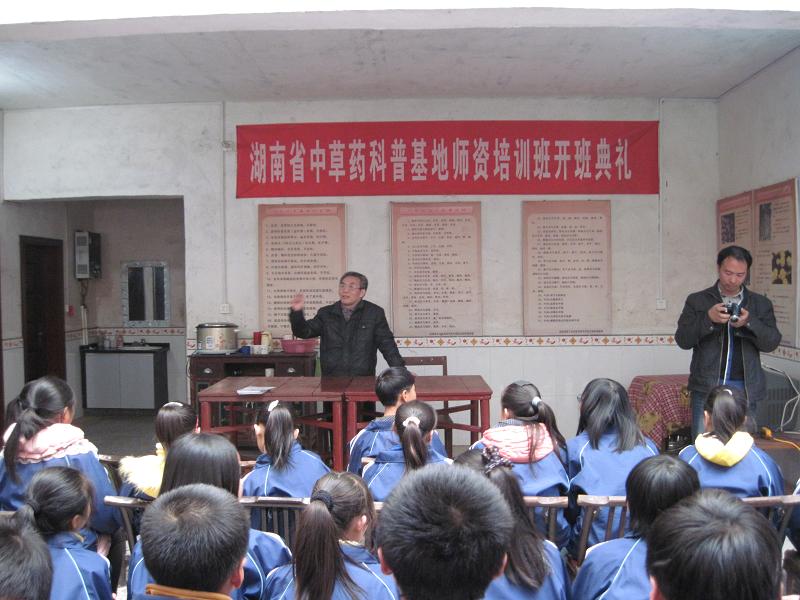 12月3日,板江中学七年级学生在老师的带领下,前往湖南省中草药识别科普基地参观学习识别中草药。该科普识别基地座落在板江乡流江村,风光秀丽,环境优美,举办过多期中草药识别科普知识培训班。学生们到达基地后,岳阳市古今医药研究所所长李穆向大家详细介绍了半夏、麦冬、艾叶、葛根、十大功劳、虎耳草、鱼腥草等身边常见中草药的特征和功效,并实地带同学生们到药圃进行识别,大家兴趣浓厚,讨论热烈,纷纷拿出纸与笔,一边观察一边询问一边记录。通过本次活动,同学们在实践中加深了对中草药的认识与了解,进一步领略了中医药文化的独特魅力。