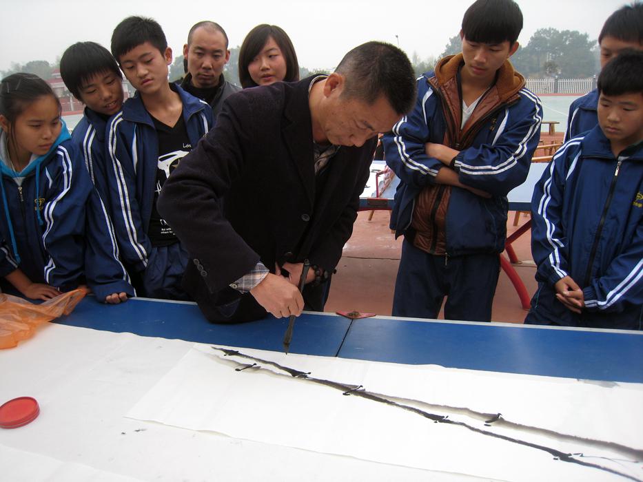 这次活动,该校总计收到民间艺术家馈赠的作品36幅。其中有省书法家协会会员,八十七岁高龄的萧希天老人历时半个月创作了一幅山水画。参加活动的还有中国书法协会会员、岳阳市书法家协会理事、平江县书法协会主席欧阳惠先生,知名画家、平江县书画馆馆长李长庚。县教育局副主任督学余应治应邀出席活动。